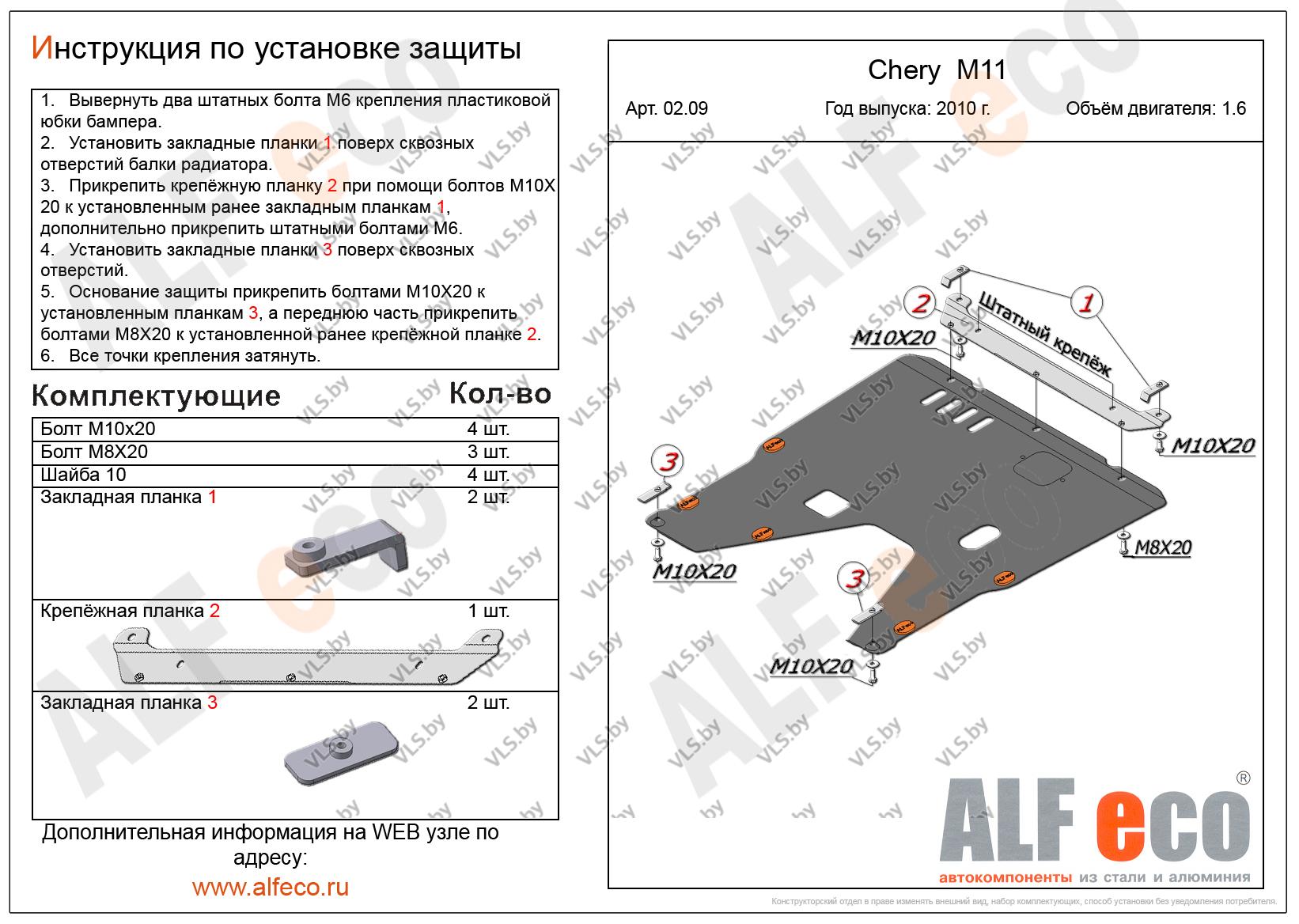 Металлическая защита картера и КПП Chery M11 с 2010-..