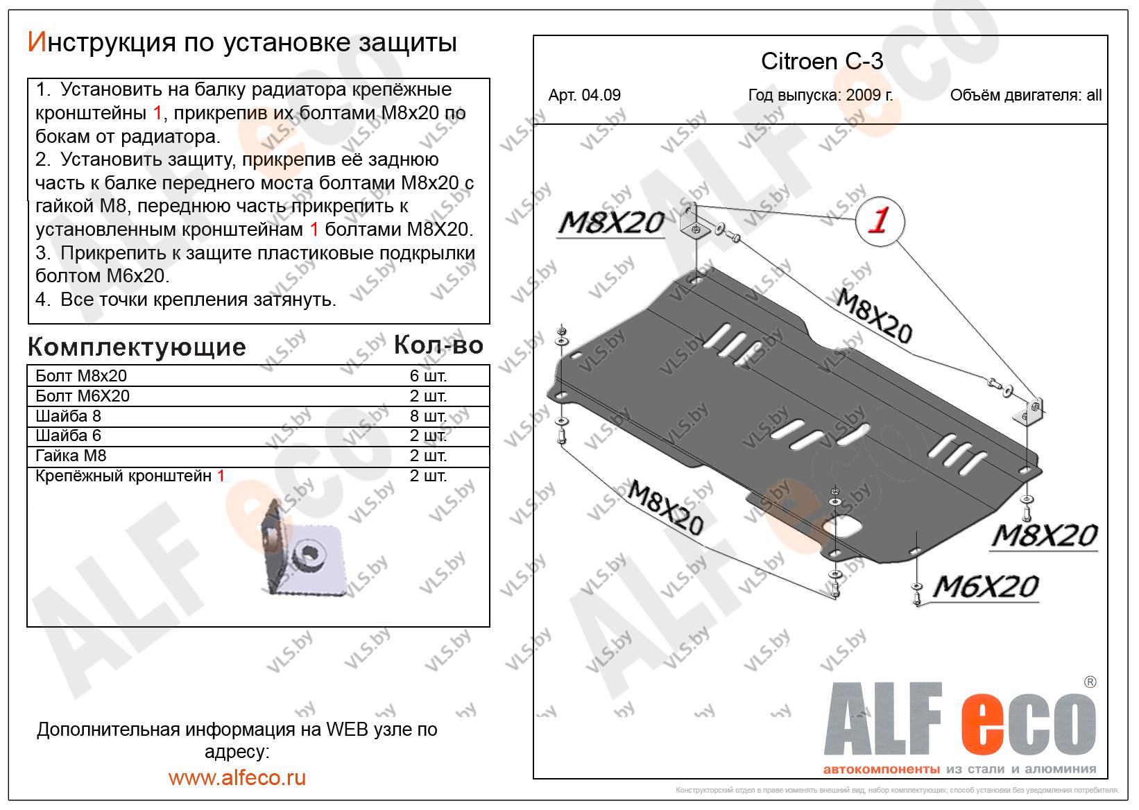 Металлическая защита картера и КПП Citroen С3 с 2009-..