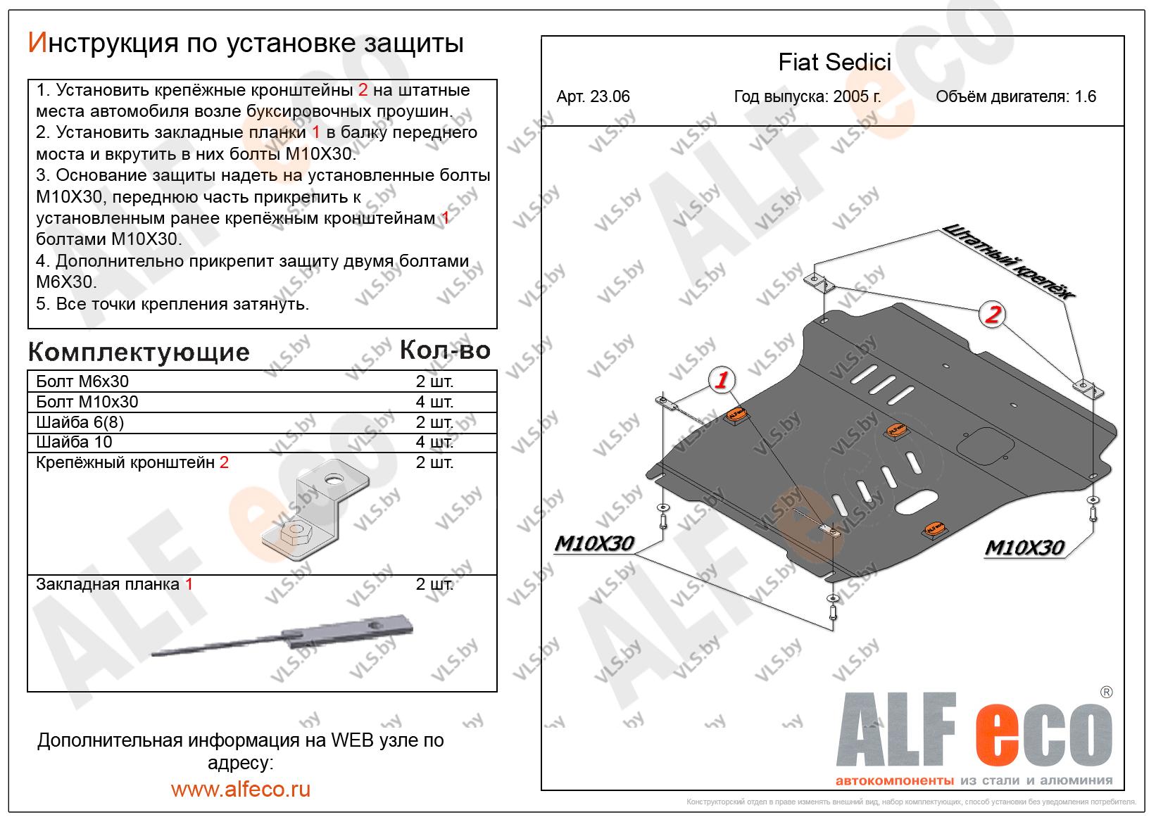 Защита картера и КПП Fiat Sedici 2005 - .. металлическая