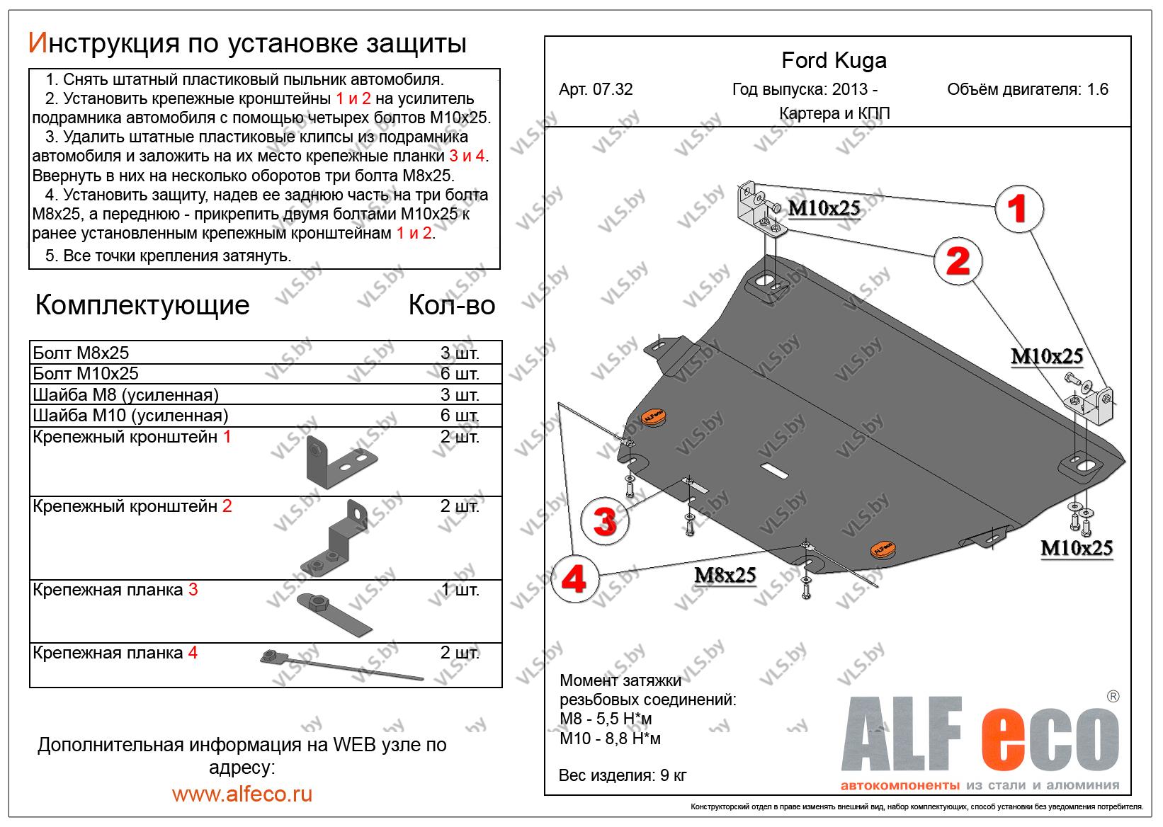 Защита картера и КПП Ford Kuga с 2013-.. (объем 1.6) металлическая