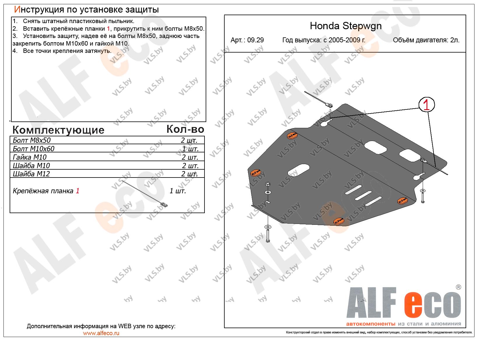 Металлическая защита картера и КПП Honda StepWGN c 2005-2009
