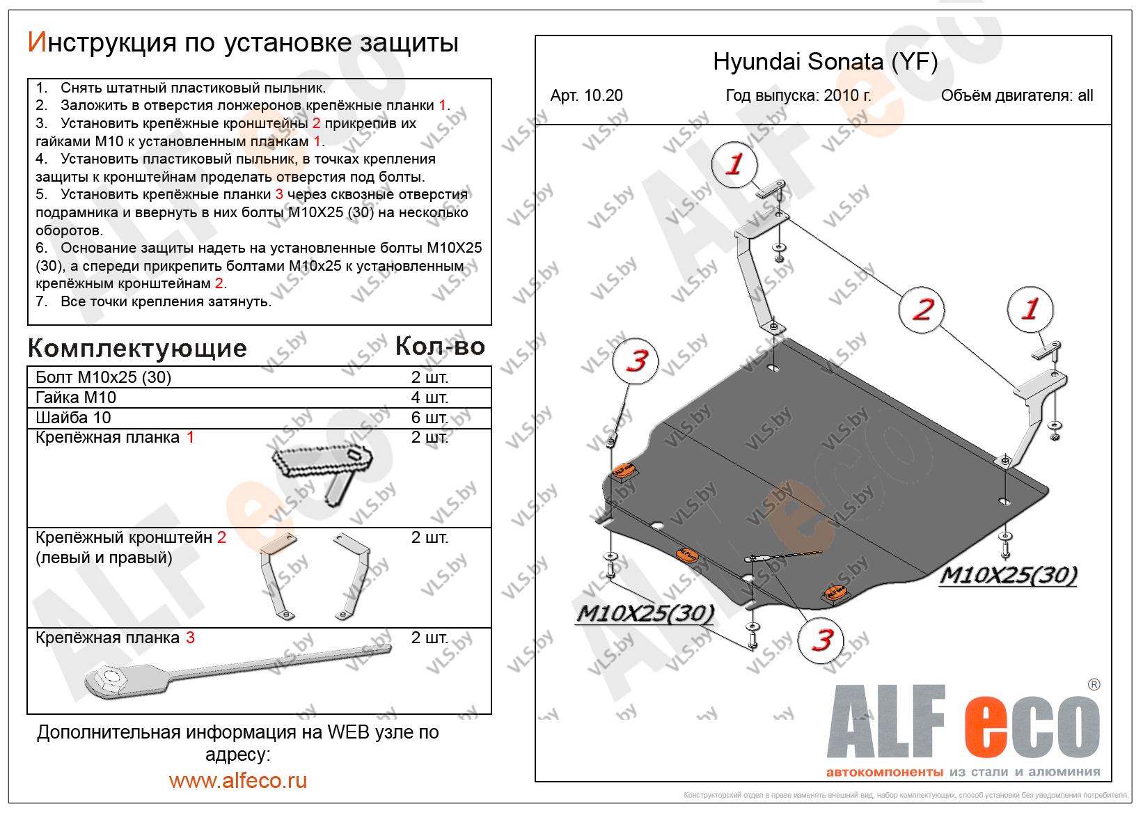 Защита картера и КПП HYUNDAI GRANDEUR с 2005 - 2011 металлическая