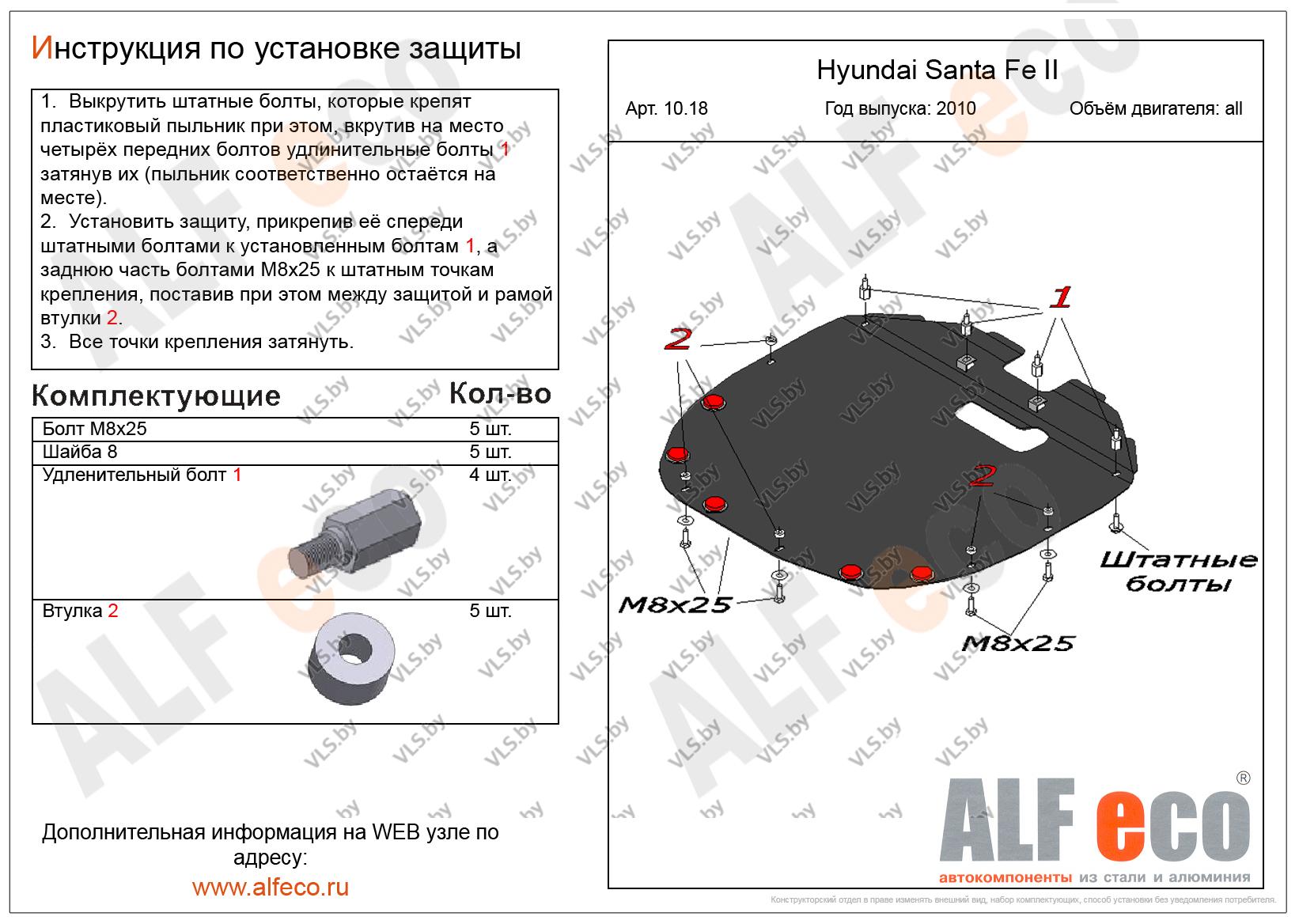 Металлическая защита картера и КПП Hyundai IX55 с 2008-..