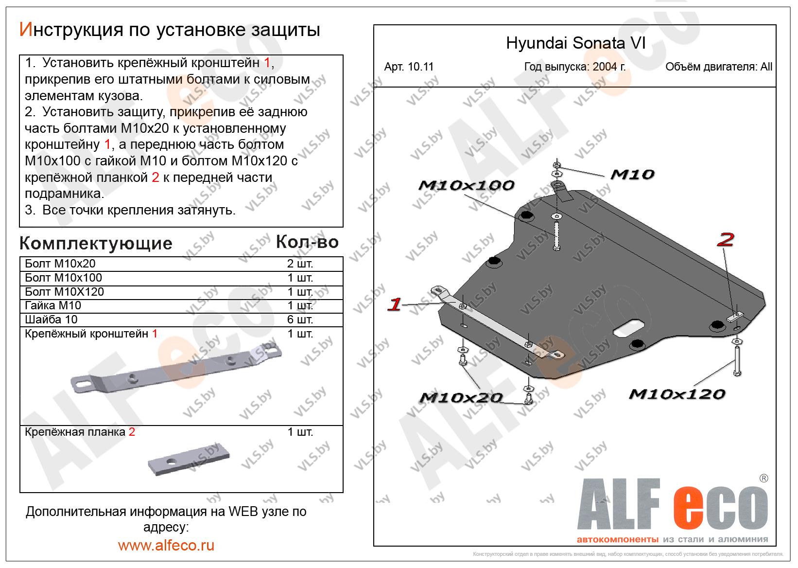 Металлическая защита картера и КПП Hyundai Sonata с 2002- ..