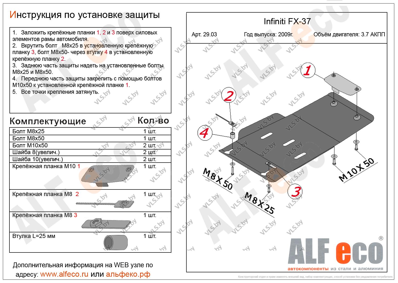 Металлическая защита АКПП Infiniti FX 37 c 2009-..