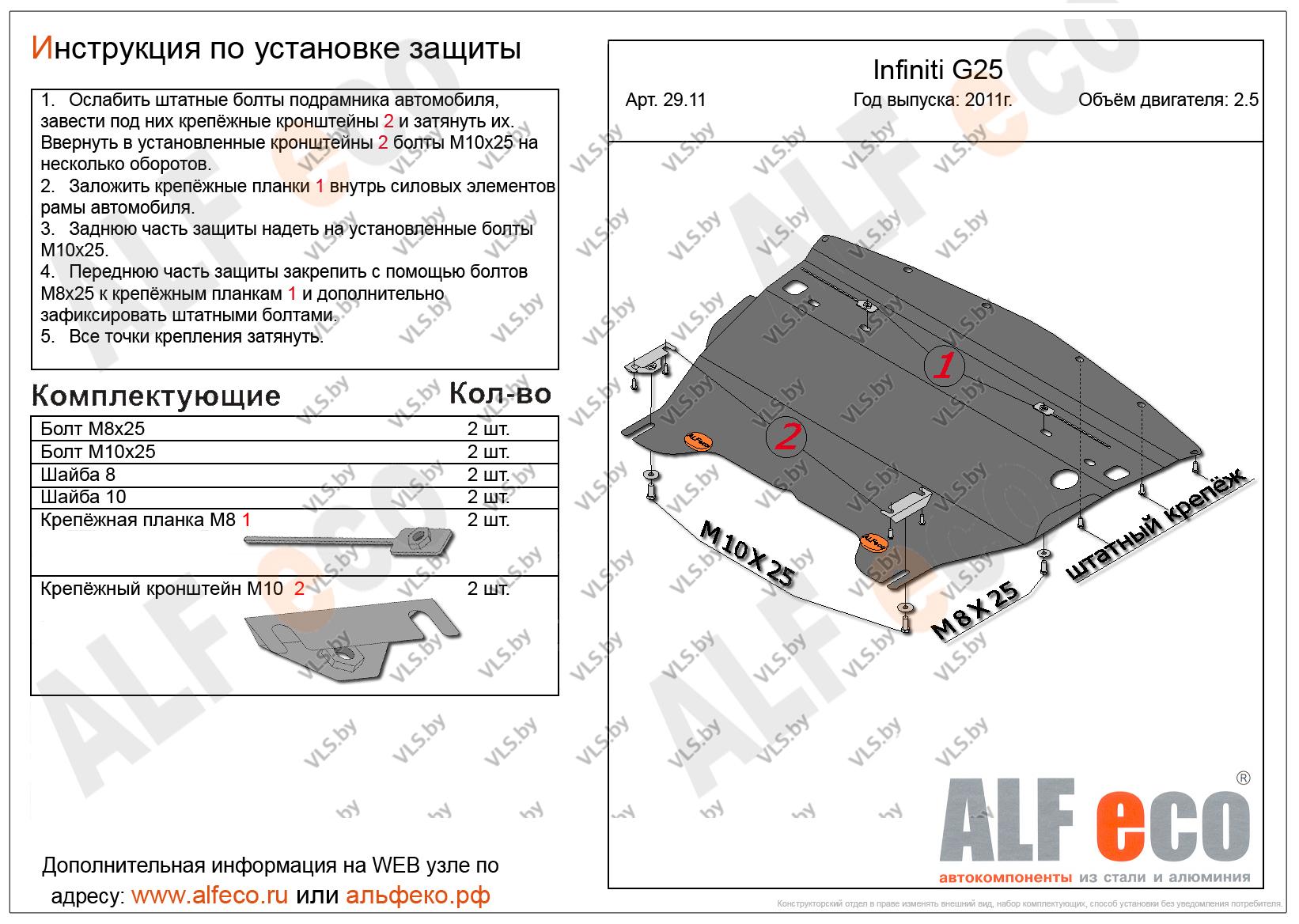 Металлическая защита картера Infiniti G25 (седан) с 2011- ..