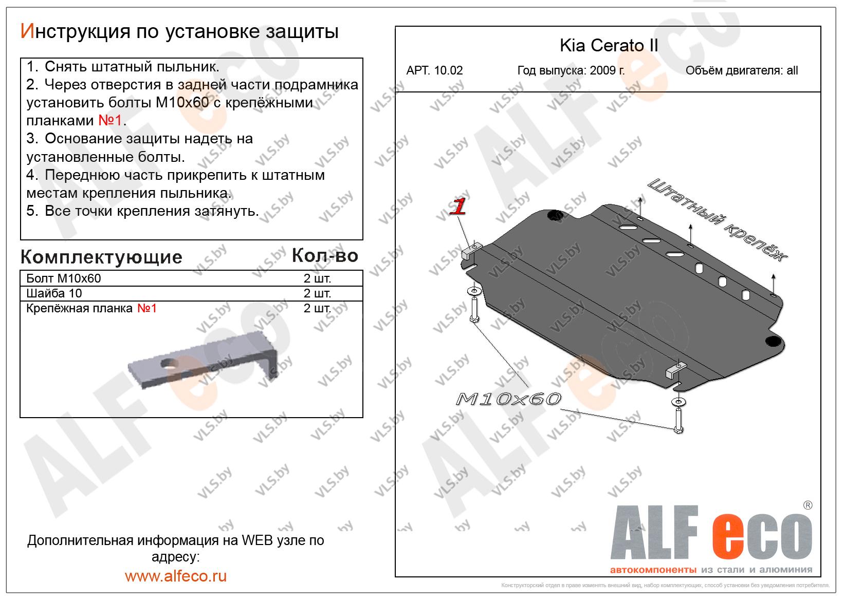 Металлическая защита картера двигателя и КПП Kia Cerato 2 с 2009 - 2013