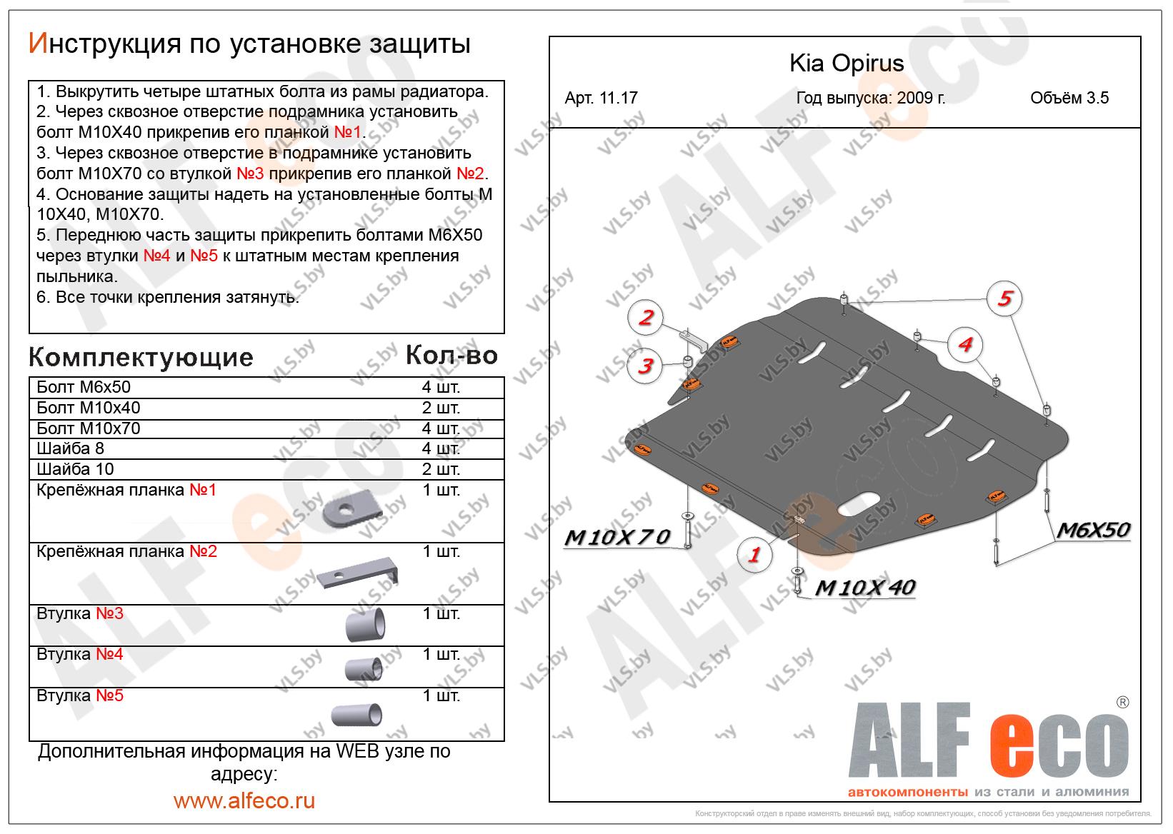 Металлическая защита картера двигателя и КПП Kia Opirus с 2007 - 2010