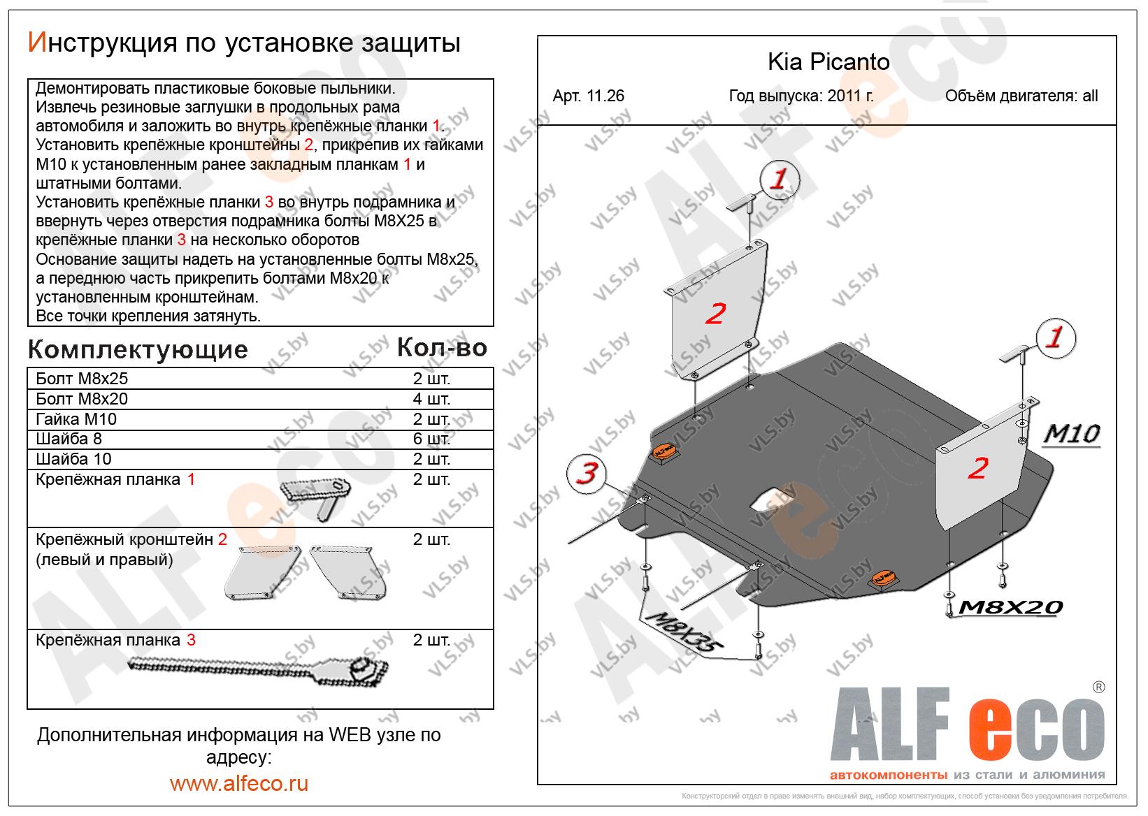 Металлическая защита картера двигателя и КПП Kia Picanto с 2011- ..