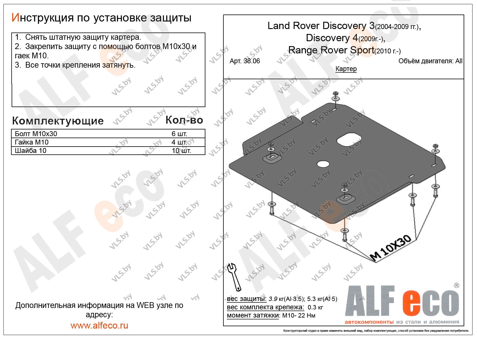 Металлическая защита картера двигателя Land Rover Discovery 4 с 2009-..