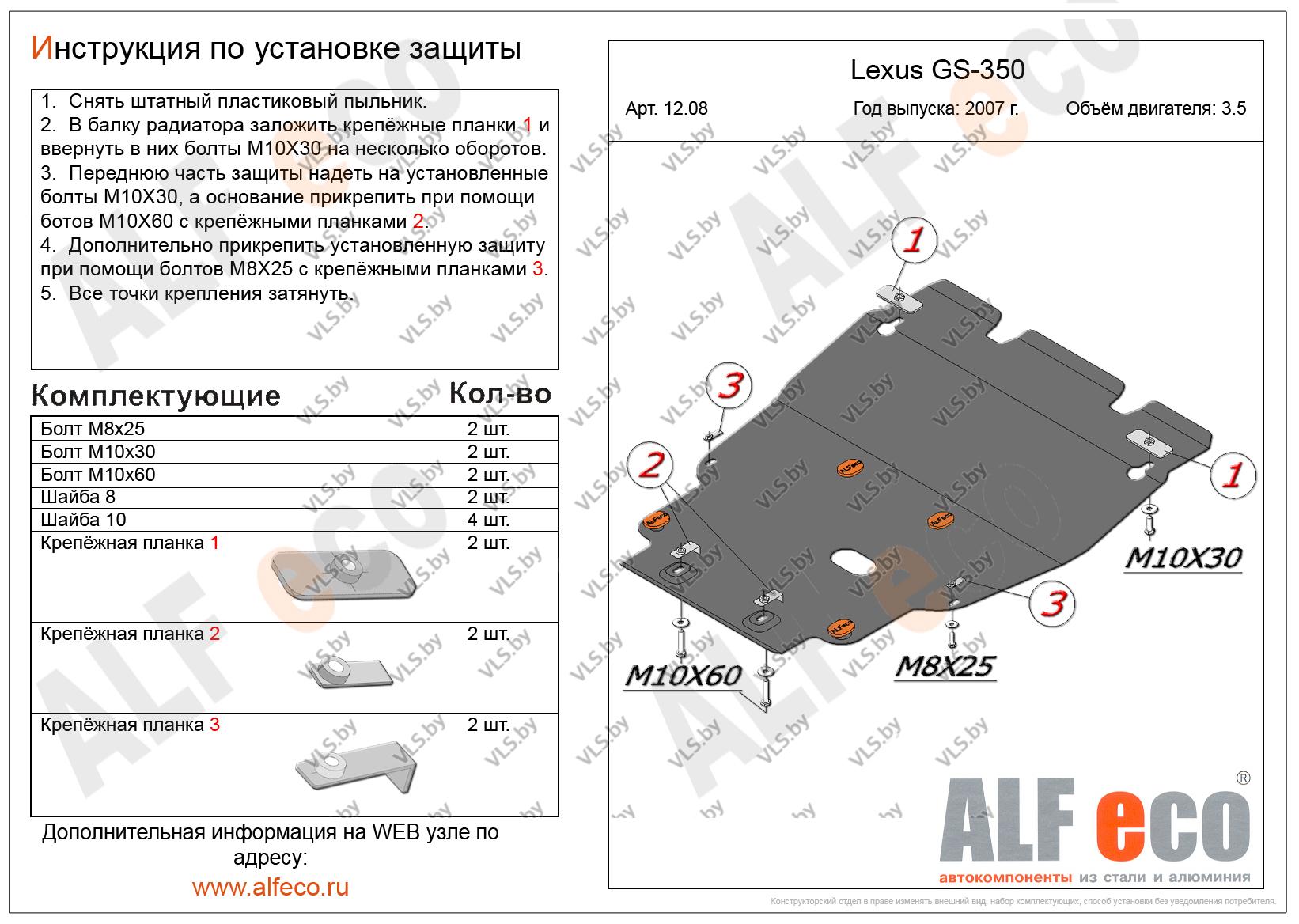 Металлическая защита картера двигателя Lexus GS 350 без пыльника с 2007-2012 (объем 3,5)