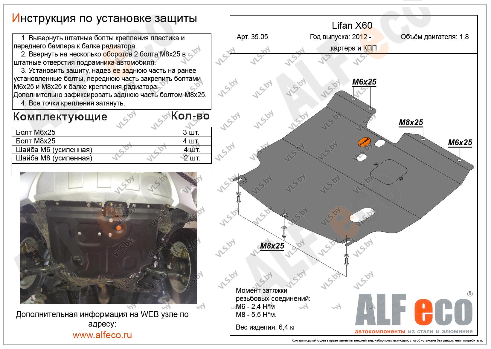 Металлическая защита картера двигателя и КПП Lifan X60 с 2012 -..