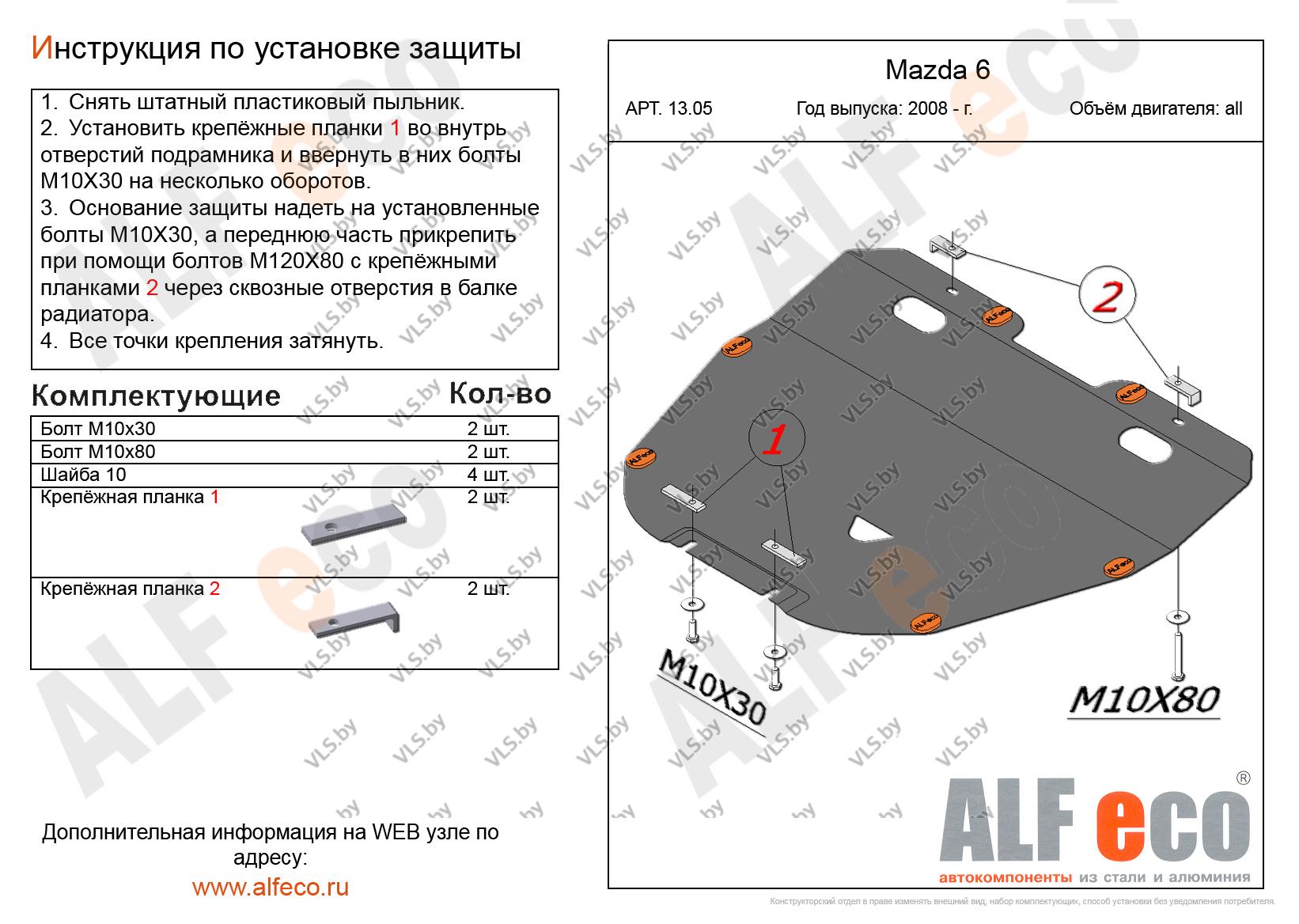 Металлическая защита картера двигателя и КПП Mazda Atenza с 2008-2012