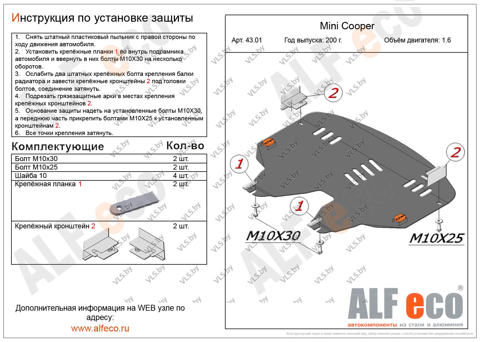 Металлическая защита картера двигателя и АКПП MINI Cooper с 2007 - ..