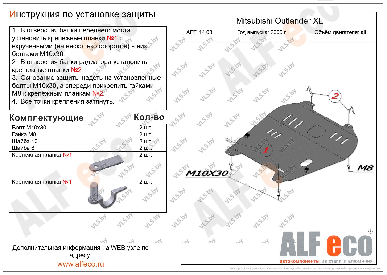 Защита двигателя MITSUBISHI OUTLANDER c 2007-2013 (дизель)