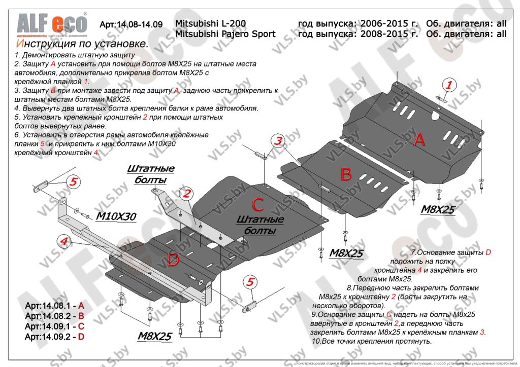 Металлическая защита двигателя и радиатора Mitsubishi Pajero Sport (2 части) с 2008-2015 (рис. А+В)