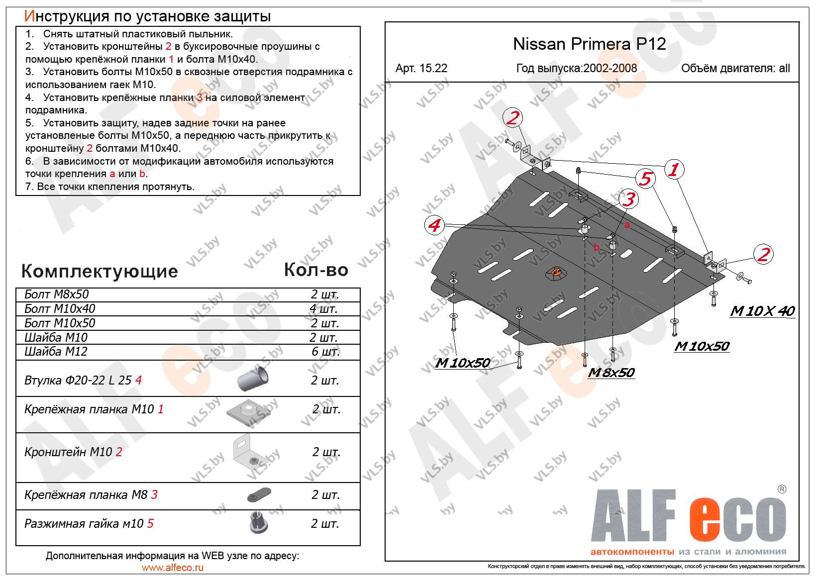 Металлическая защита картера двигателя и КПП Nissan Primera P12 с 2001 - 2007