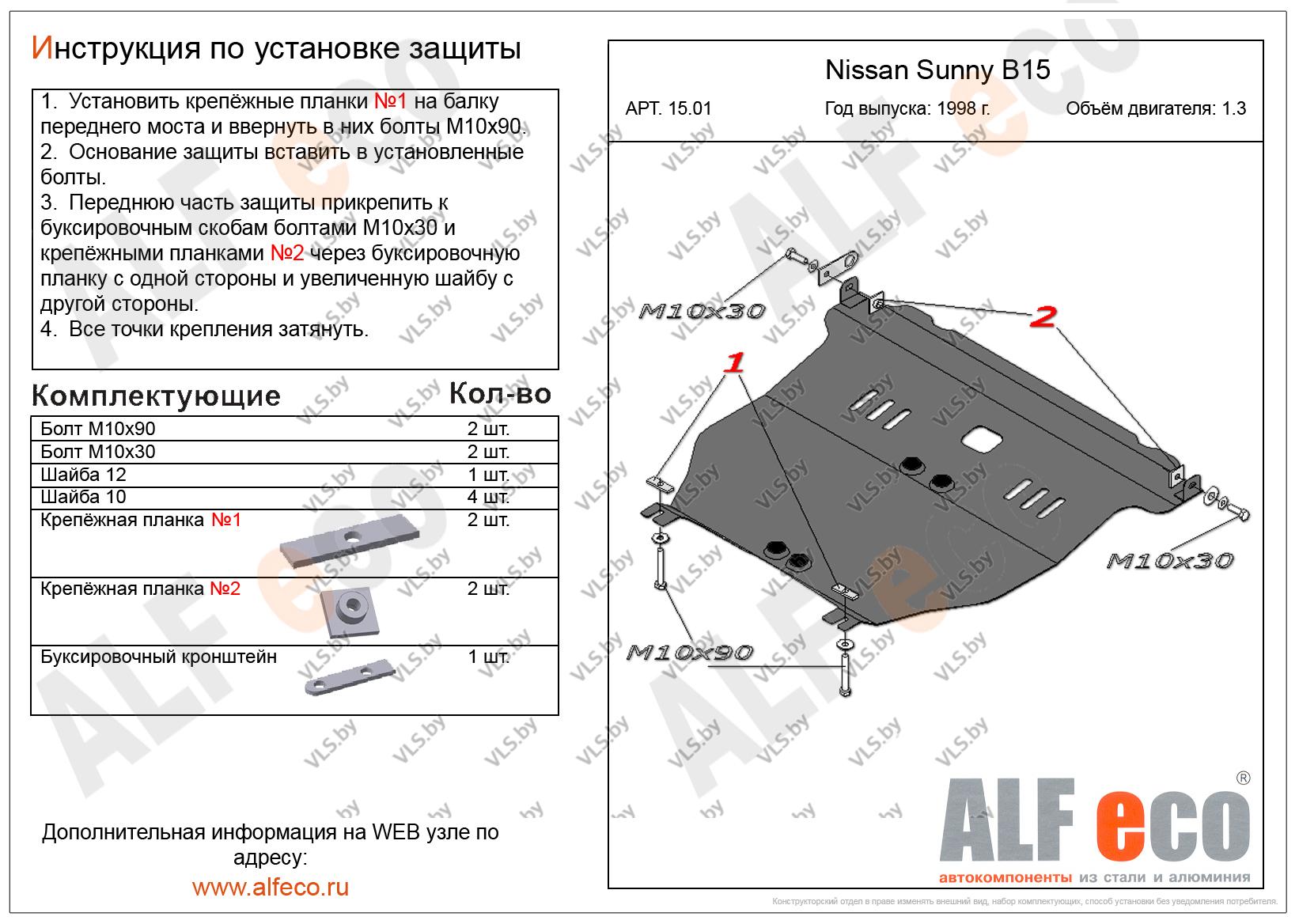 Металлическая защита картера двигателя и КПП Nissan Sunny с 1998-2007