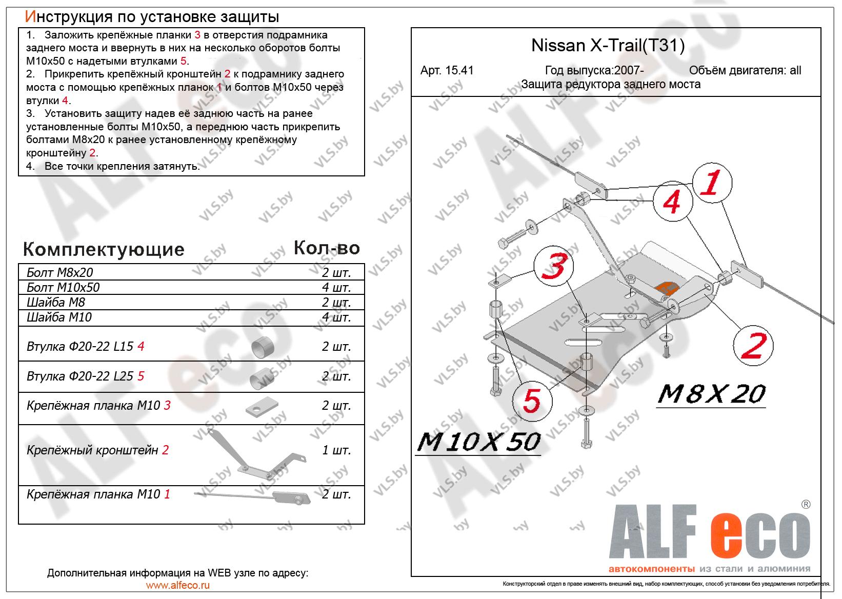 Металлическая защита редуктора заднего моста Nissan X-Trail (T31) с 2007-2014