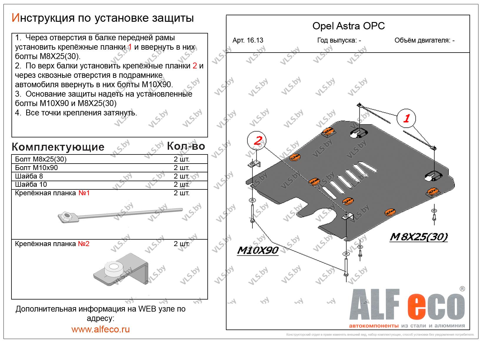 Металлическая защита картера и КПП Opel Astra OPC с 2013- .. (объем 1,6 Turbo)