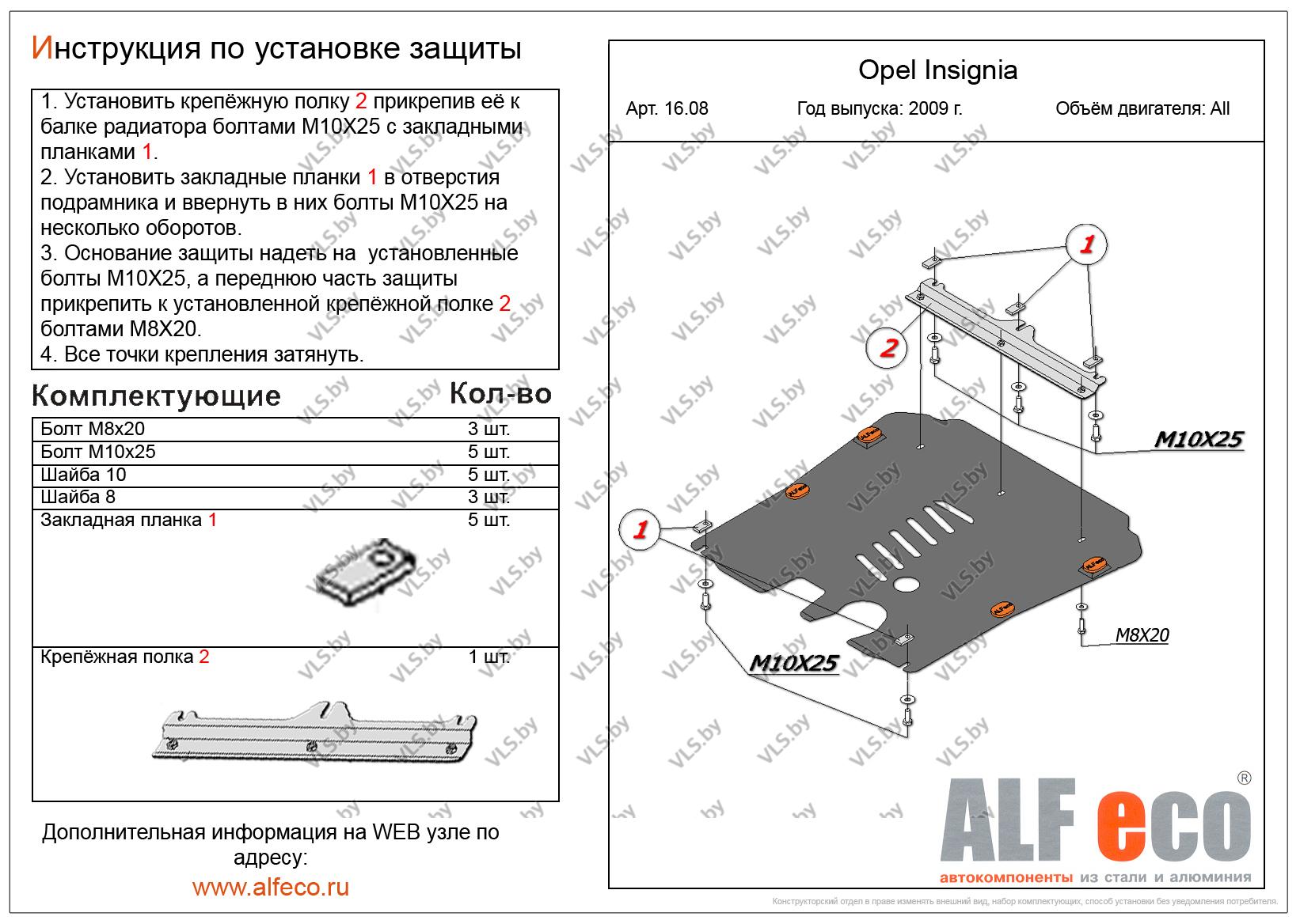 Металлическая защита картера и КПП Opel Insignia с 2009 - 2013