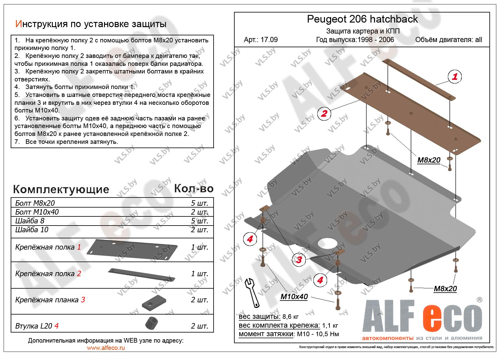 Защита двигателя и КПП PEUGEOT 206 с 1998-... металлическая