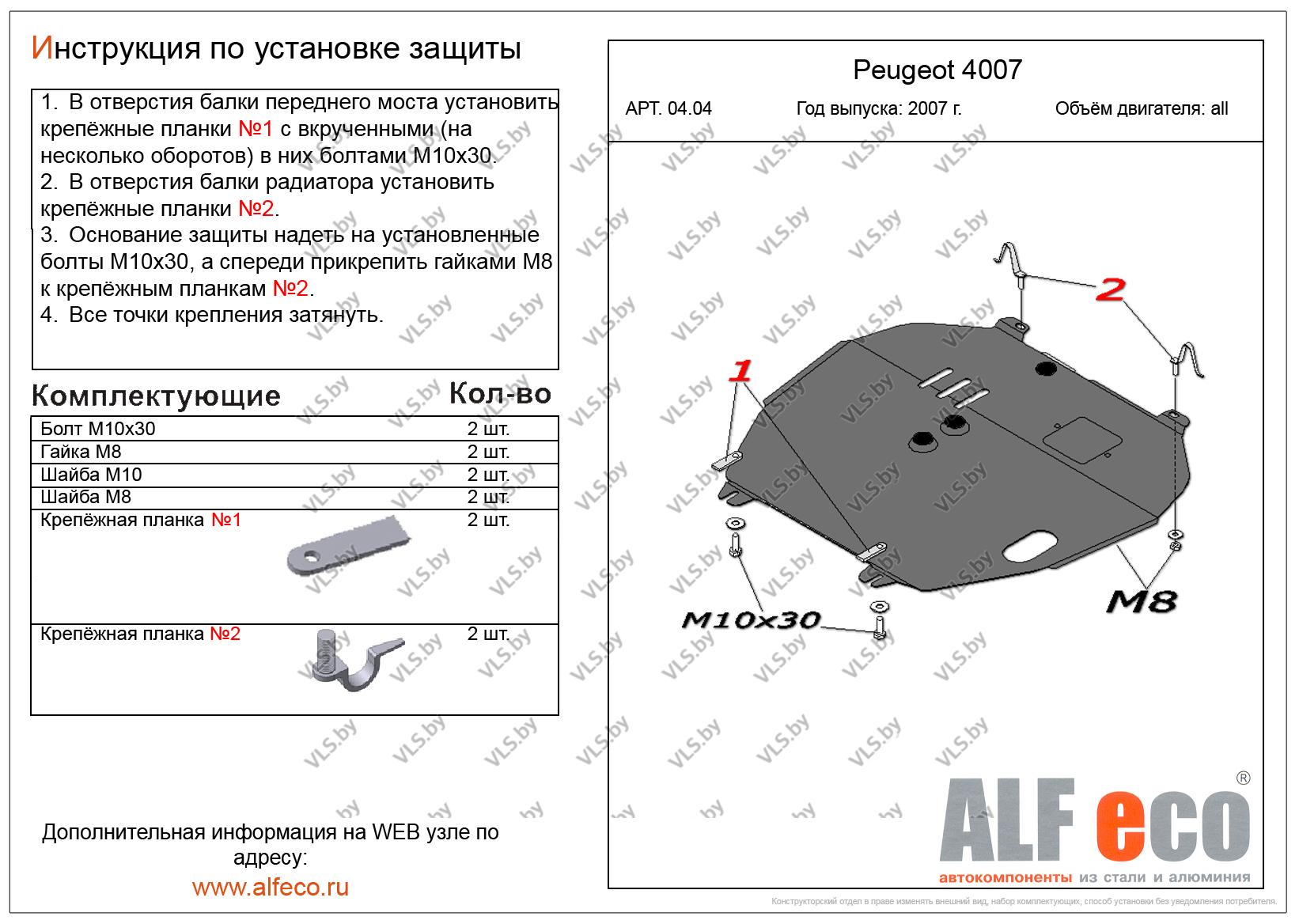 Защита двигателя PEUGEOT 4007
