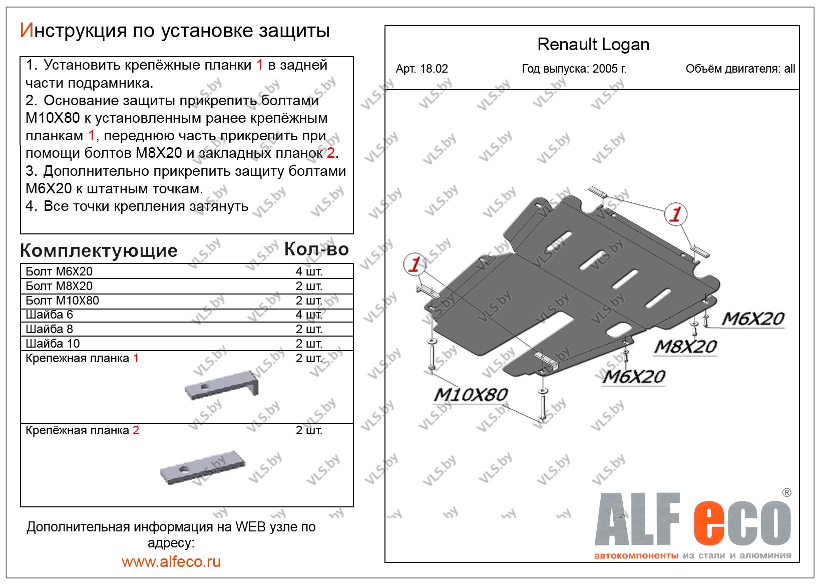 Металлическая защита картера и КПП Renault Logan с 2004-..