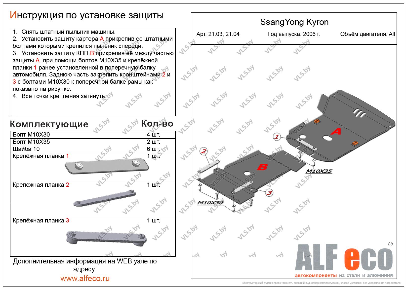 Металлическая защита двигателя SsangYong Kyron с 2005-2011