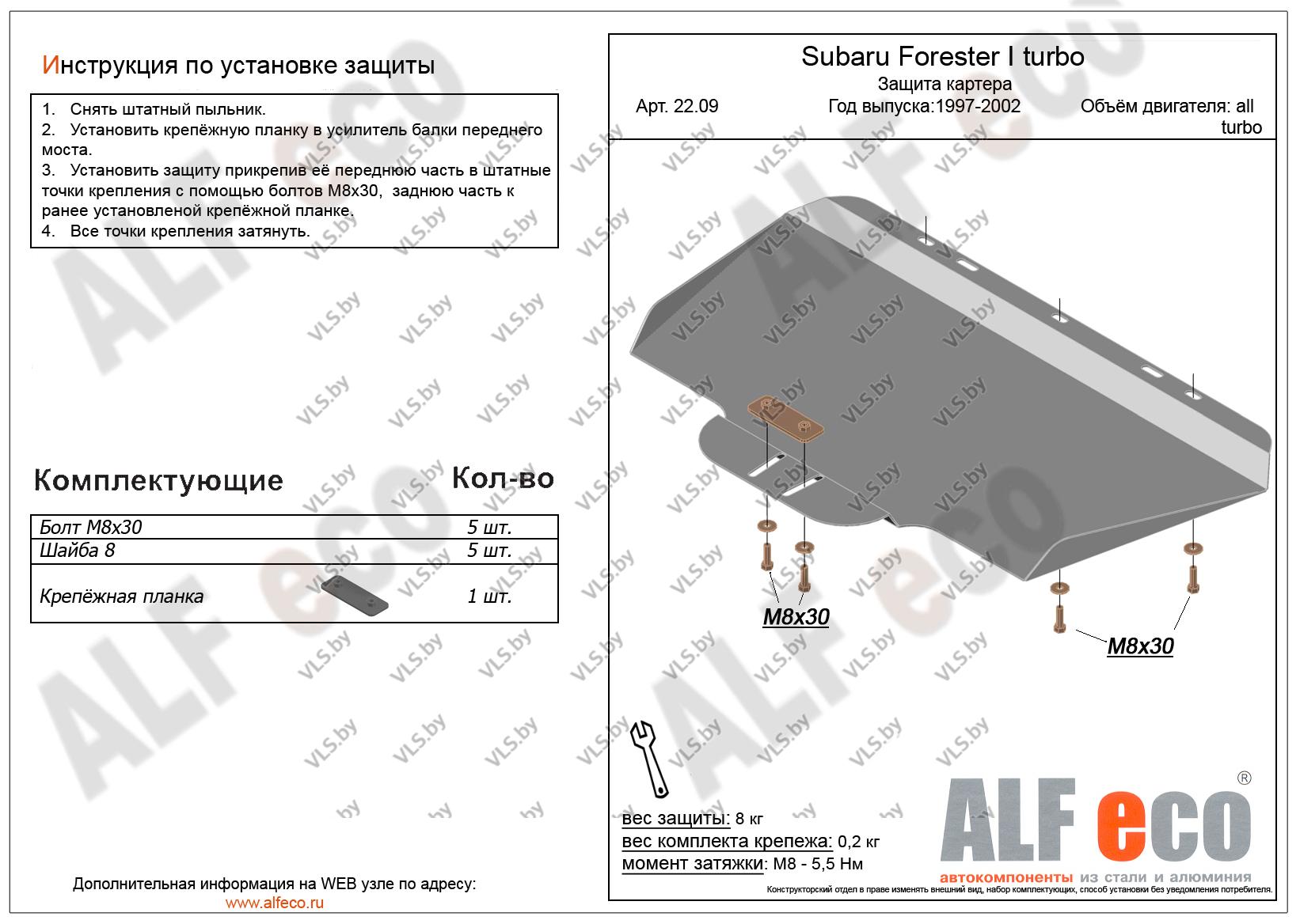 Металлическая защита двигателя Subaru Forester 1 с 1997-2002