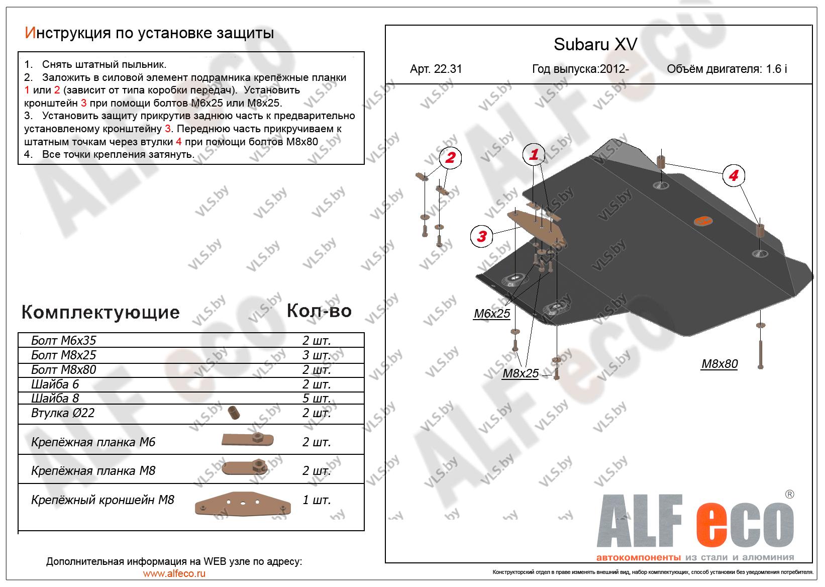 Металлическая защита двигателя Subaru XV с 2012 -...