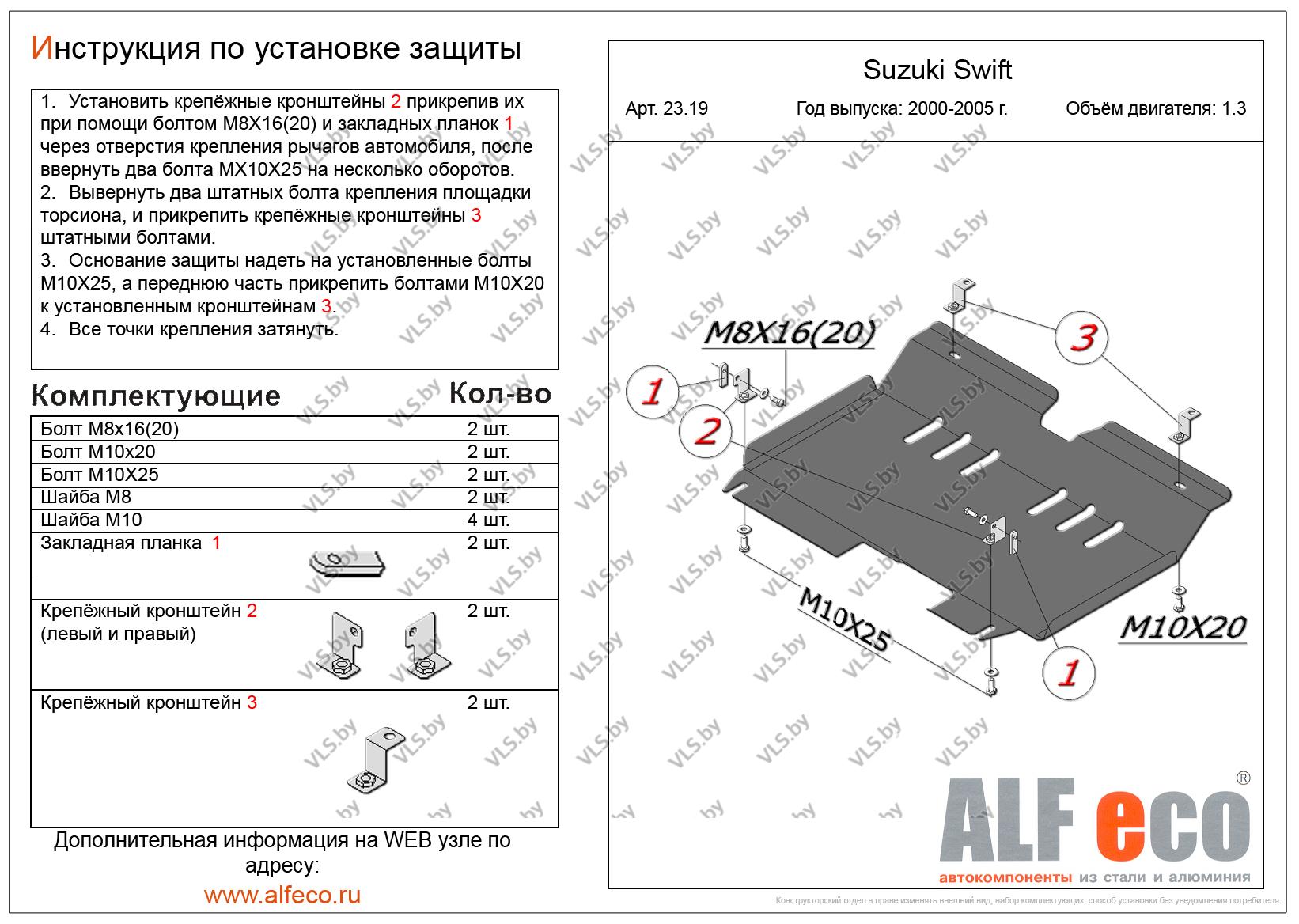 Металлическая защита картера двигателя и КПП Suzuki Swift правый руль с 2000-2005, производство Россия
