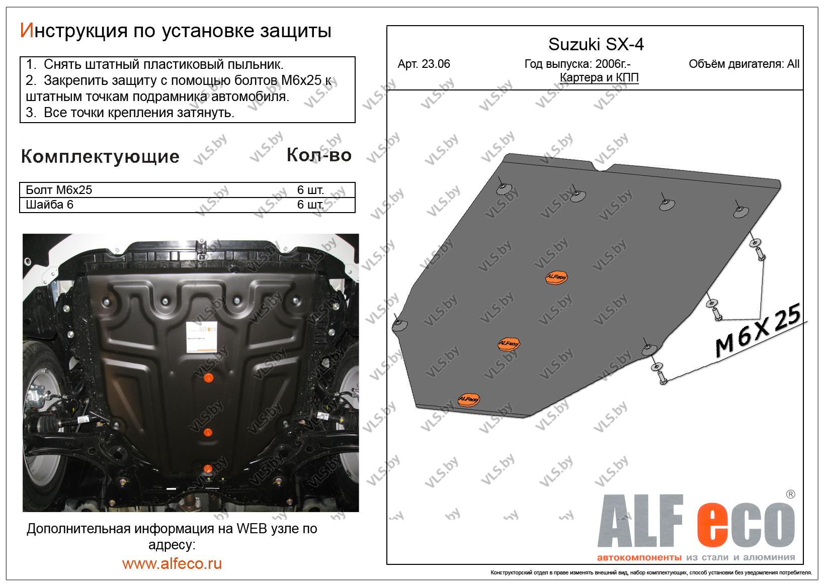 Металлическая защита картера двигателя и КПП Suzuki SX4 с 2006-.., производство Россия