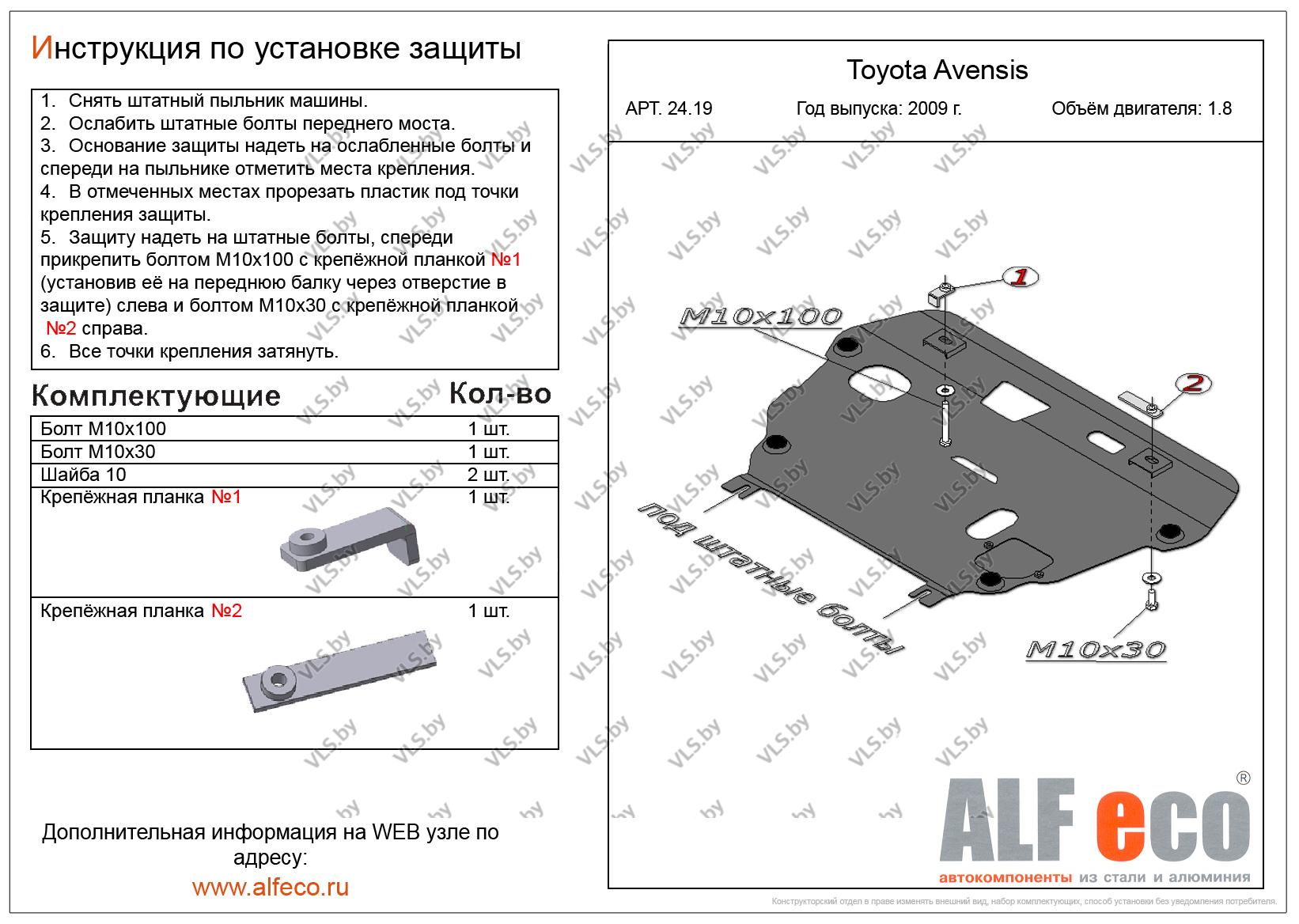 Металлическая защита картера и КПП Toyota Avensis c 2009-.. (объем 1,8), производство Россия