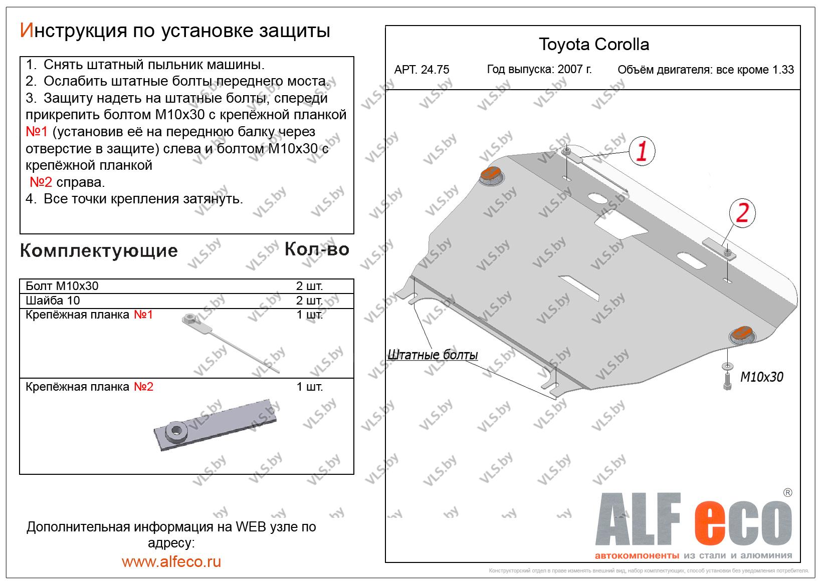 Металлическая защита картера и КПП Toyota Corolla c 2007 - 2018, производство Россия