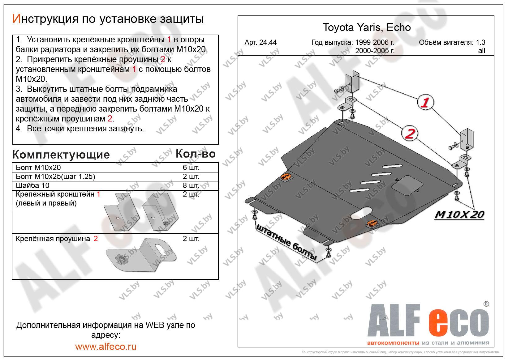 Если у Вас возникают какие либо вопросы относительно выбора модели товара или сомневаетесь, что Защита двигателя и КПП TOYOTA Echo c 1999 - 2005 металлическая подойдет к Вашему авто - позвните нам и наши специалисты помогут Вам.