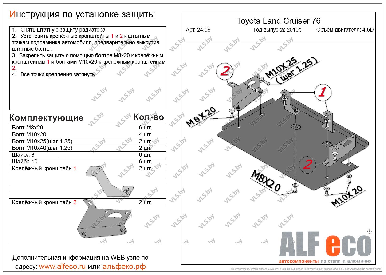 Металлическая защита радиатора Toyota Land Cruiser 76 c 2010-.., производство Россия