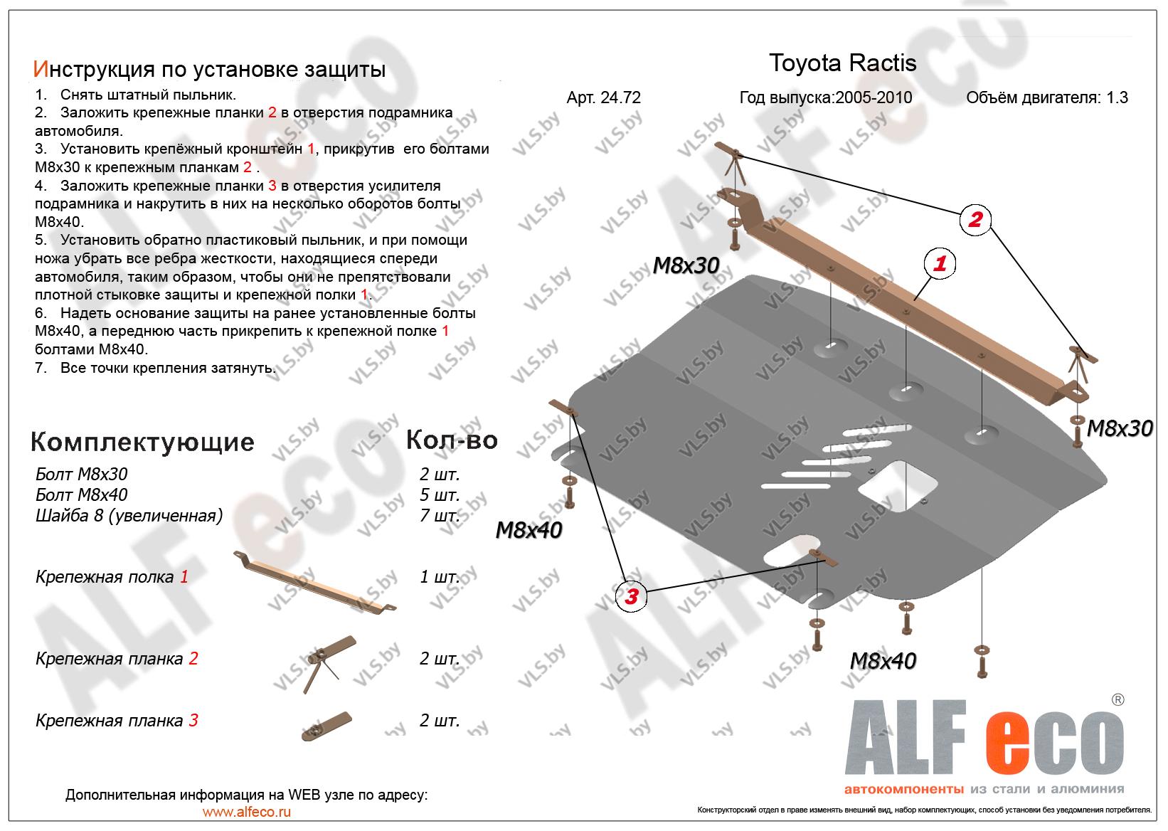 Металлическая защита двигателя и АКПП Toyota Ractis c 2005-2010 (объем 1,3), производство Россия