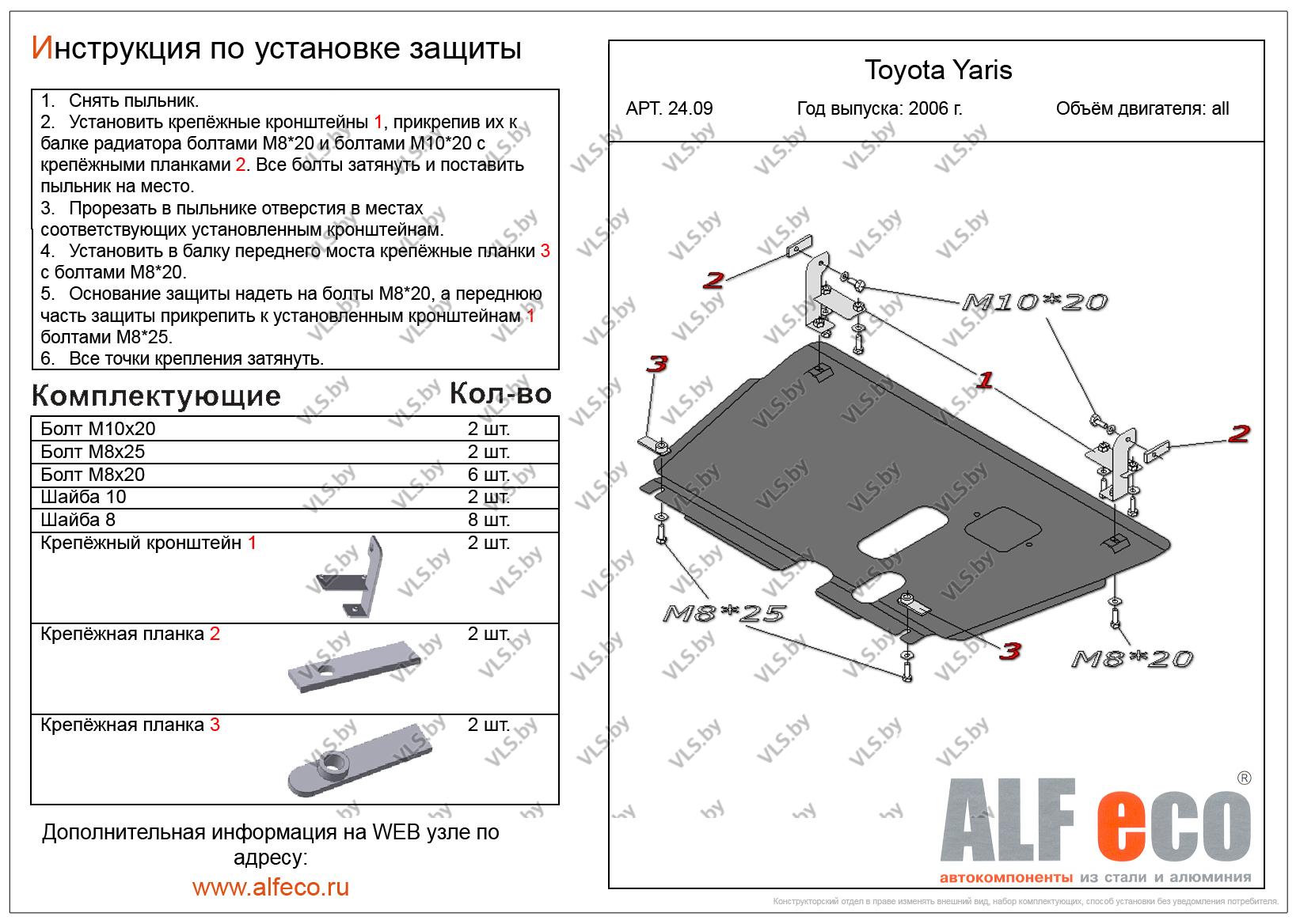 Металлическая защита картера и КПП Toyota Yaris c 2005-2020, производство Россия
