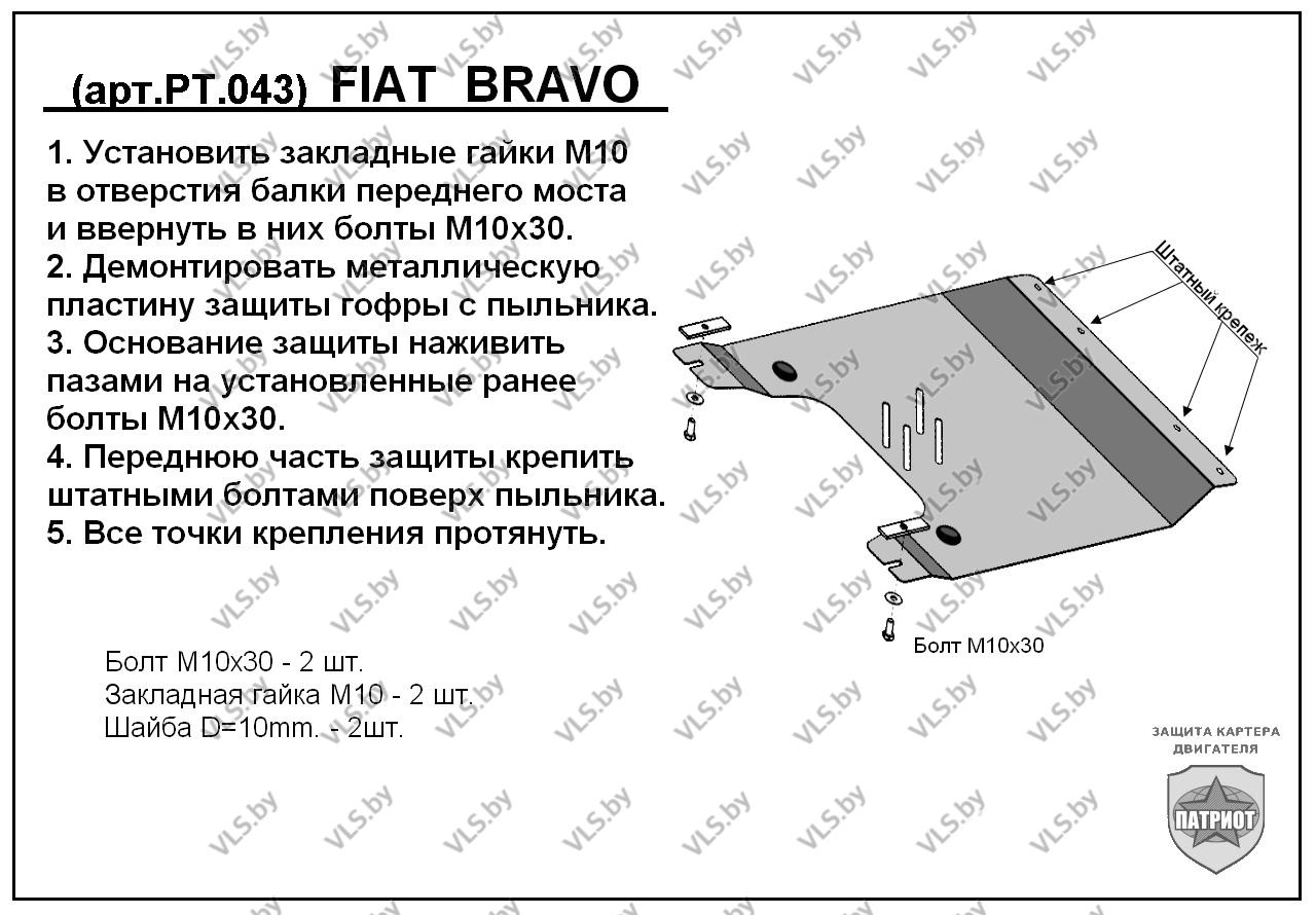Защита двигателя и КПП FIAT BRAVO с 2007-.. металлическая