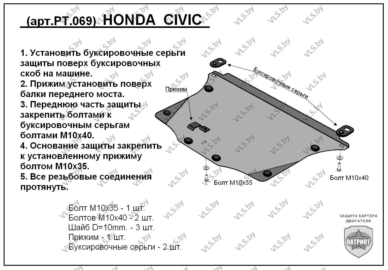 Защита двигателя и КПП HONDA CIVIC с 2006-… (хэтчбек) металлическая