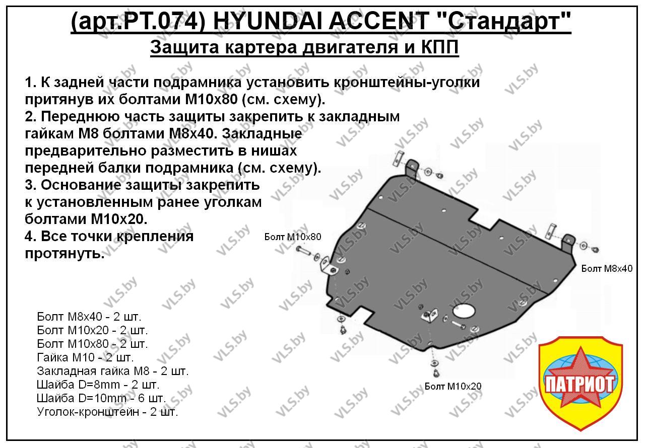 Металлическая защита двигателя и КПП HYUNDAI ACCENTс 1999-2010