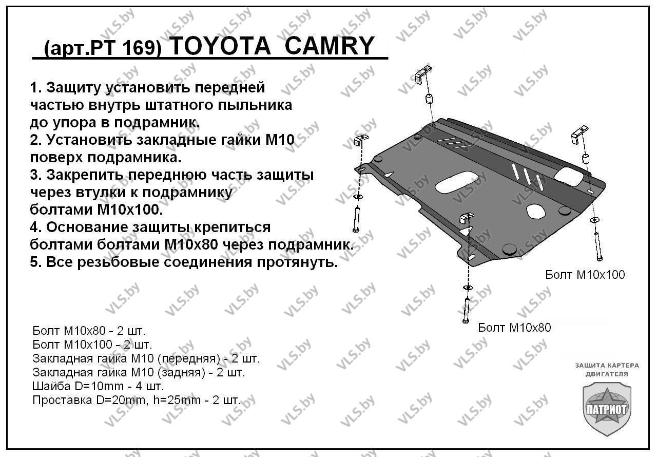 Защита двигателя и КПП TOYOTA CAMRY с 2011-... (объем 2,5, бензин, АКП) металлическая