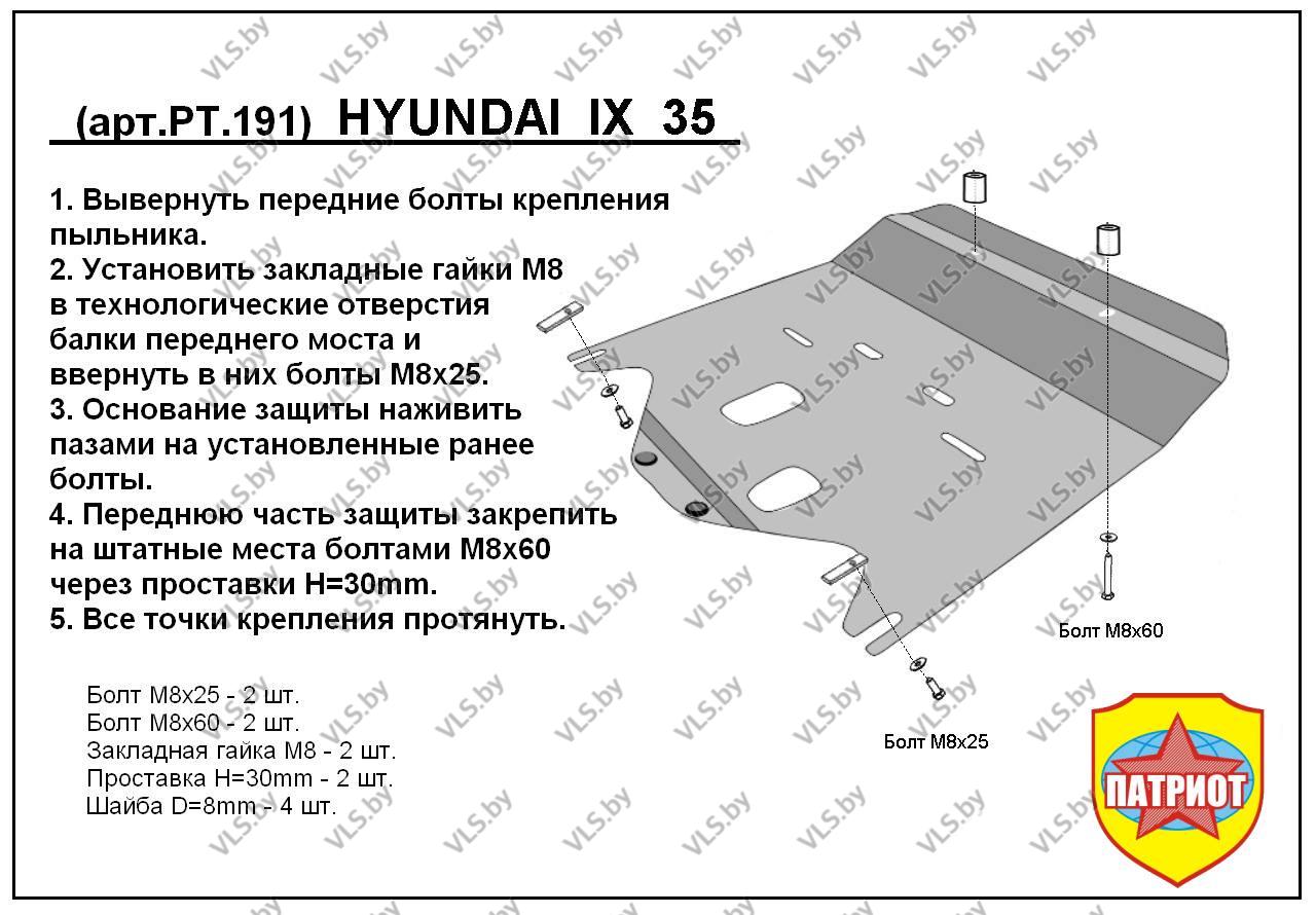 Комплект поставки состоит из защиты, оцинкованного крепежа и инструкции по установке.