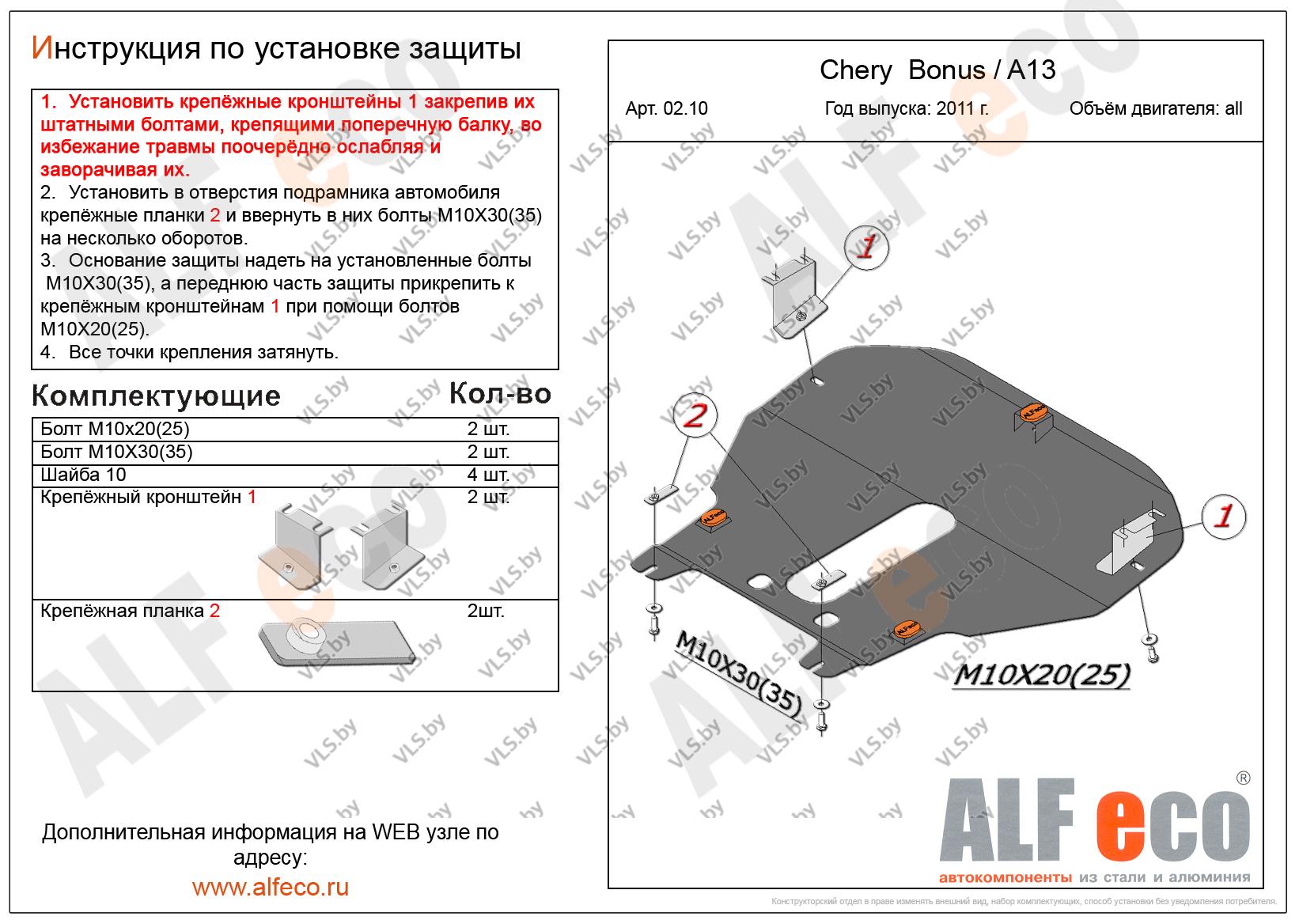 Металлическая защита картера и КПП Chery A13 с 2011- ..