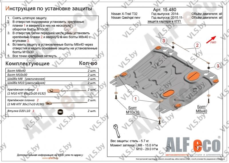 Защита двигателя и КПП NISSAN X-TRAIL (T32) с 2015-... металлическая