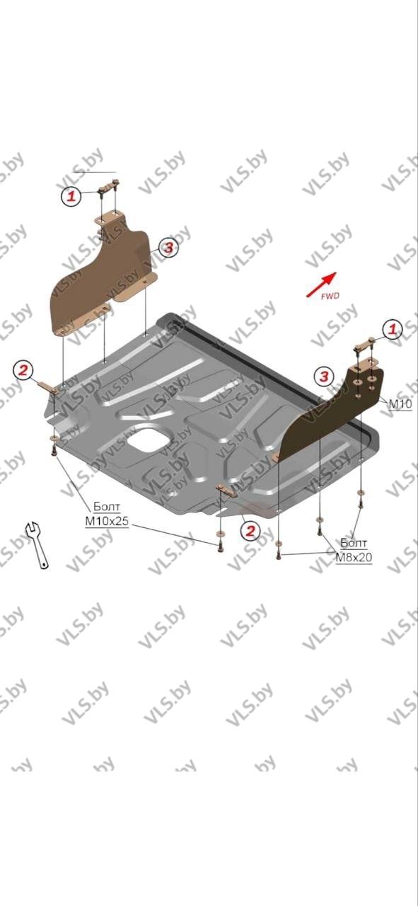 Защита двигателя и КПП FORD TOURNEO CUSTOM с 2014-.., сталь 2мм