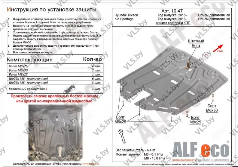 Каждая защита отдельно упакована (стрейч-пленка), в комплект входит крепеж и инструкция по установке